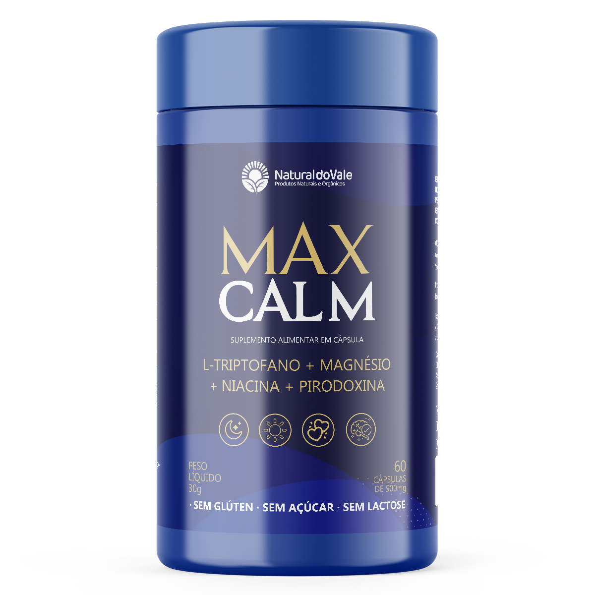 O Max Calm foi desenvolvido por especialistas a fim de ajudar no dia a dia provomendo o bem estar. Sua formulação composta por L-Triptofano, Magnésio, Niacina e Piridoxina atua diretamente como precursor de serotonina, conhecido como hormônio da felicidade. Suas principais funções são melhora do sono, humor, memória e diminuição do apetite. Sua composição conta ainda com matéria prima importada.